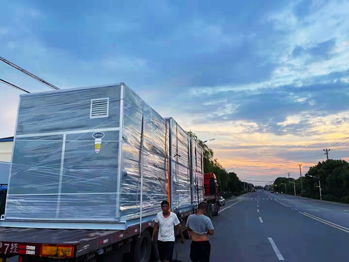 今天本公司有三臺大型裝有隔音箱的玻璃鋼風機發往貴州某工地,因為風機的使用區域對于噪音有嚴格的要求,所以在風機上加裝了隔音箱。
